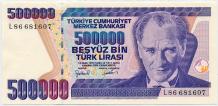 Аверс: фон многоцветный. Портрет - М. Кемаля Ататюрка.