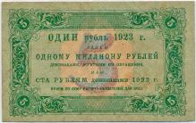 Аверс: фон многоцветный. Один рубль 1923 г. Равен одному миллиону ранее выпущенных.