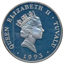 Аверс: портрет Елизаветы II в профиль, год, надписи "Королева Елизавета II", "Тувалу".