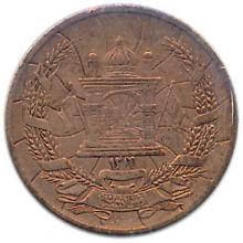 Аверс: В центре герба изображена мечеть с молитвенной нишей (михрабом), обращенной к Мекке и кафедрой для проповедей (минбаром). По обеим сторонам мечети диагонально расположены два флага. Мечеть окружена венком из колосьев, перевитым лентой. На ленте по центру надпись со словом ''Афганистан''.