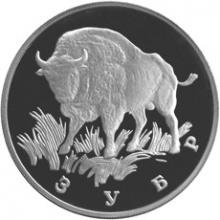 Реверс: рельефное изображение зубра, ниже по кругу надпись: «Зубр».