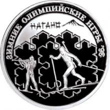 Вверху по кругу надписи: «Зимние олимпийские игры 98», ниже — «Нагано».