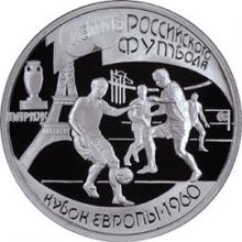 Реверс: изображение футболистов в момент финальной игры розыгрыша Кубка Европы между командами СССР и Югославии в Париже в 1960 году, закончившейся победой советской команды со счетом 2:1.