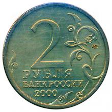 Аверс: в центре диска - обозначение достоинства монеты в две строки "2 РУБЛЯ", ниже - надпись: "БАНК РОССИИ", под ней - дата "2000", слева и справа - стилизованная ветка растения.