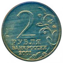 Аверс: в центре диска — обозначение достоинства монеты в две строки «2 РУБЛЯ», ниже — надпись: «БАНК РОССИИ», под ней — дата «2001», слева и справа — стилизованная ветка растения.
