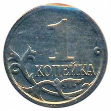 - в центре (ближе к правому краю) – обозначение номинала монеты: цифра 1, под ней - слово "КОПЕЙКА", расположенное горизонтально;