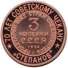 МонетыКоллекцииРоссияСССР (РСФСР)Пробные монеты70 лет Советскому чекануСтепанов