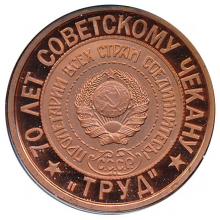 МонетыКоллекцииРоссияСССР (РСФСР)Пробные монеты70 лет Советскому чекануТруд