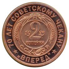 МонетыКоллекцииРоссияСССР (РСФСР)Пробные монеты70 лет Советскому чекануВперед