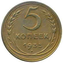 Реверс: номинал "5 копеек", написанный в две строки, под ним дата, ниже - точка.