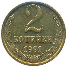 Аверс: номинал "2 копейки", написанный в две строки, под ним дата, ниже - точка. По бокам колосья, стебли которых пересекаются и образуют круговой ободок.