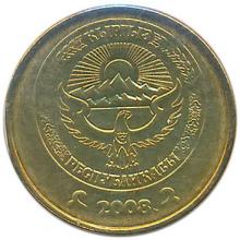 Реверс: герб Кыргызской Республики и год выпуска монеты.
