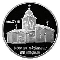 Аверс: в центре – изображение Мазаракиевской церкви Кишинэу, слева – надпись „sec. XVIII”, в нижней части, в две строки – заглавными буквами выгравирована надпись „BISERICA MĂZĂRACHE DIN CHIŞINĂU”.