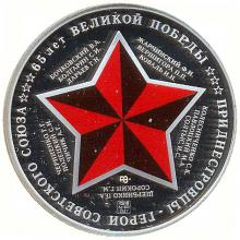 Аверс: в центре: крупным планом стилизованное изображение красной звезды (эмаль).