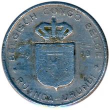 Реверс: надписи "Belgisch Congo Belge" и "Ruanda-Urundi".