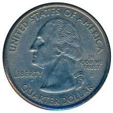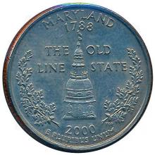 Реверс: Купол здания законодательного органа штата. Края монеты обрамлены листьями белого дуба. Надпись: "The Old Line State" (Штат старой границы). Под названием штата MARYLAND год 1788 - год присоединения к США (28 апреля).