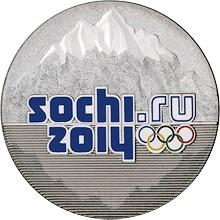 Аверс: в средней части диска, на фоне рельефного изображения горы - горизонтальная надпись: "sochi.ru", под ней, на участке тени, отбрасываемой горой - дата: "2014" и пять олимпийских колец. Надпись: "sochi", дата: "2014" и пять олимпийских колец исполнены цветной тампонной печатью.