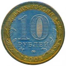 Аверс: в центре диска - обозначение достоинства монеты "10 РУБЛЕЙ". Внутри цифры "0" - скрытые, видимые поочередно при изменении угла зрения изображения цифры "10" и надписи "РУБ". В нижней части диска - товарный знак монетного двора. В верхней части кольца по окружности - надпись: "БАНК РОССИИ", в нижней - дата "2008", слева и справа - стилизованные ветви растений, переходящие на диск.