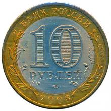 Аверс: в центре диска - обозначение достоинства монеты "10 РУБЛЕЙ". Внутри цифры "0" - скрытые, видимые поочередно при изменении угла зрения изображения цифры "10" и надписи "РУБ". В нижней части диска - товарный знак монетного двора. В верхней части кольца по окружности - надпись: "БАНК РОССИИ", в нижней - дата "2008", слева и справа - стилизованные ветви растений, переходящие на диск.