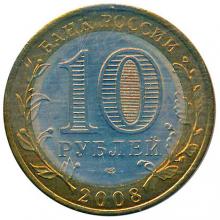 Аверс: в центре диска - обозначение достоинства монеты "10 РУБЛЕЙ". Внутри цифры "0" - скрытые, видимые поочередно при изменении угла зрения изображения цифры "10" и надписи "РУБ". В нижней части диска - товарный знак монетного двора. В верхней части кольца по окружности - надпись: "БАНК РОССИИ", в нижней - дата "2008", слева и справа - стилизованные ветви растений, переходящие на диск.
