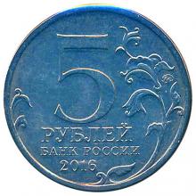 Аверс: в центре диска – обозначение номинала монеты в две строки: "5 РУБЛЕЙ", ниже – надпись: "БАНК РОССИИ", под ней – год чеканки: "2016", слева и справа – стилизованная ветка растения, справа у канта – товарный знак монетного двора.