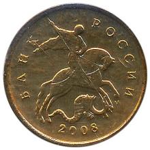 - вверху по окружности слева на право – надпись, разделенная фигурой Георгия Победоносца: "БАНК РОССИИ"; - внизу, под фигурой змея – год чеканки.