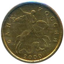 - вверху по окружности слева на право – надпись, разделенная фигурой Георгия Победоносца: "БАНК РОССИИ"; - внизу, под фигурой змея – год чеканки.