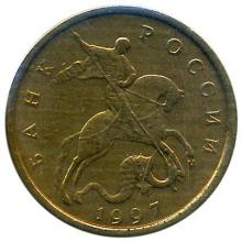 - вверху по окружности слева на право – надпись, разделенная фигурой Георгия Победоносца: "БАНК РОССИИ"; - внизу, под фигурой змея – год чеканки.