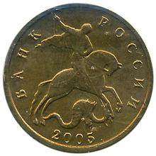 - вверху по окружности слева на право – надпись, разделенная фигурой Георгия Победоносца: "БАНК РОССИИ"; - внизу, под фигурой змея – год чеканки.