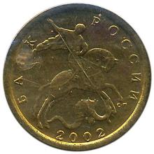 - вверху по окружности слева на право – надпись, разделенная фигурой Георгия Победоносца: "БАНК РОССИИ"; - внизу, под фигурой змея – год чеканки.