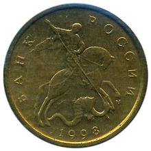 - вверху по окружности слева на право – надпись, разделенная фигурой Георгия Победоносца: "БАНК РОССИИ"; - внизу, под фигурой змея – год чеканки.