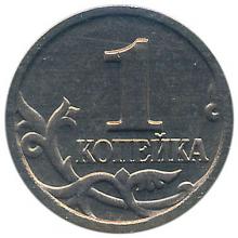 - в центре (ближе к правому краю) – обозначение номинала монеты: цифра 1, под ней - слово "КОПЕЙКА", расположенное горизонтально;