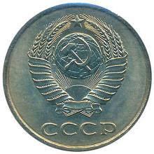 Реверс: герб СССР с пятнадцатью витками перевязывающей ленты. Под ним горизонтальная надпись "СССР".