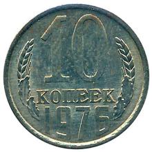 Аверс: номинал, написанный в две строки: "10 копеек", под ним дата. По бокам венок, верхнюю часть которого составляют колосья, нижнюю - дубовые листья, соединенные внизу декоративной ракушкой.