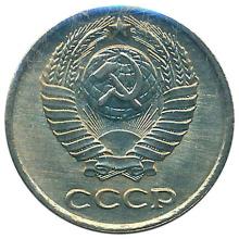 Реверс: герб СССР с пятнадцатью витками перевязывающей ленты. Под ним горизонтальная надпись "СССР".