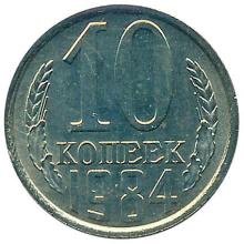 Аверс: номинал, написанный в две строки: "10 копеек", под ним дата. По бокам венок, верхнюю часть которого составляют колосья, нижнюю - дубовые листья, соединенные внизу декоративной ракушкой.