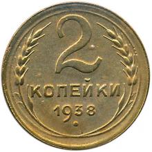 Аверс: номинал "2 копейки", написанный в две строки, под ним дата, ниже - точка. По бокам колосья, стебли которых пересекаются и образуют круговой ободок.