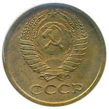 Реверс: герб СССР с пятнадцатью витками перевязывающей ленты. Под ним горизонтальная надпись "СССР".