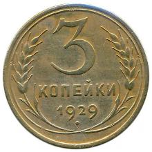 Аверс: номинал, написанный в две строки: "3 копейки", под ним дата, ниже - точка. По бокам колосья, стебли которых пересекаются и образуют круговой ободок.