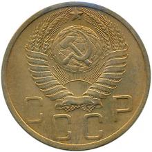 Реверс: герб СССР с одиннадцатью витками перевязывающей ленты. Под ним полукругом со ступенчатым расположением букв надпись "СССР".