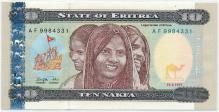 Аверс: фон многоцветный. В центре - три молодые девушки. Слева - люди поднимающие флаг Эритреи.