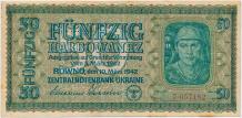 Аверс: фон многоцветный. Оккупационные. Центральный эмиссионный банк Украины.