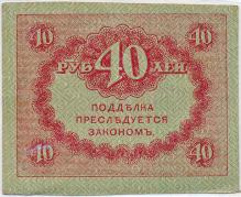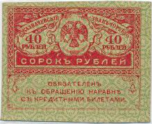 Аверс: фон красно-зеленый. Временное правительство. В центре и по углам номинал - 40 рублей.