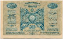 Реверс: фон синий. В центре герб республики, по бокам номинал - 5000 рублей.