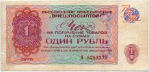 Аверс: фон многоцветный. Разменный чек на получение товаров - В.П.Т.