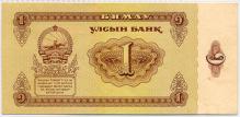 Аверс: фон желтый. В центре цифры - 1, слева - герб Монголии.
