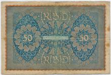 Реверс: фон многоцветный. По бокам цифры - 50.