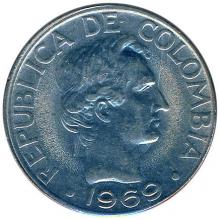 Аверс: Франциско де Паула Сантандер (1792-1840) – национальный герой Колумбии в борьбе за независимость