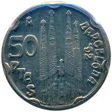 Олимпийские игры в Барселоне. Аверс: Хуан Карлос I Реверс: Церковь Святого Семейства (полное название: Искупительный храм Святого Семейства)