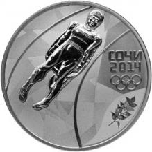 Реверс"Санный спорт" - саночника, и выполненной в цвете иглицы колхидской, слева имеются: в две строки надпись "СОЧИ" и дата "2014", под ними – пять олимпийских колец.